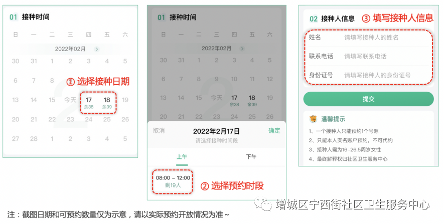 提示:请根据自身需求选择预约接种时间,并认真填写报名信息(很重要!)