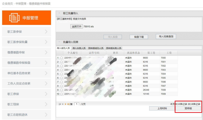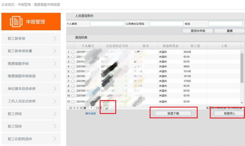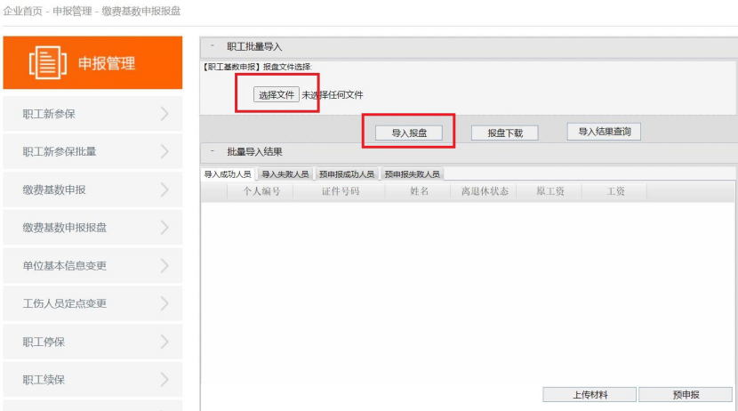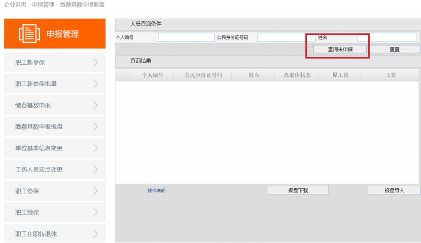提示:单位可以直接在申报管理中选择第四个模块,“缴费基数申报报盘”。