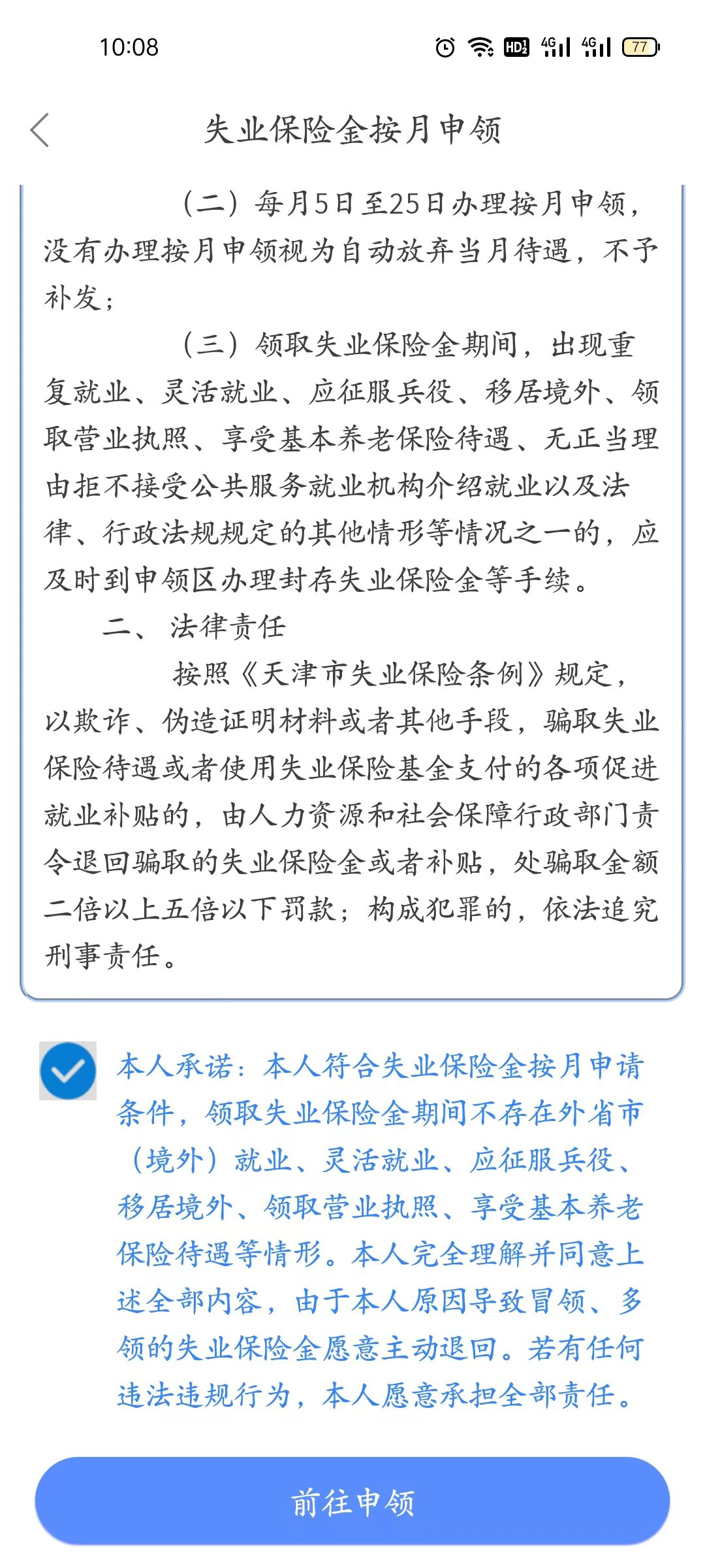 5、首次申领者点击“失业保险金首次申领”,同意承诺并填写信息即可。