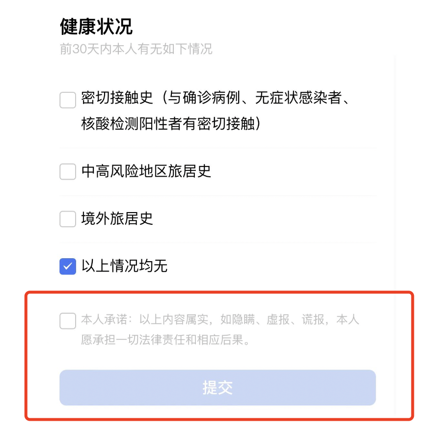 请按照平台提示填写,勾选底部“本人郑重承诺:以上内容属实隐瞒、虚报、谎报、本人承担一切法律责任和相应后果”后,点击提交。