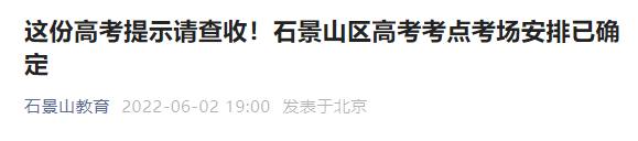 这份高考提示请查收!石景山区高考考点考场安排已确定