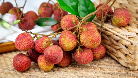荔枝是无患子科、荔枝属常绿乔木,高约10米。果皮有鳞斑状突起,鲜红,紫红。成熟时至鲜红色;种子全部被肉质假种皮包裹。花期春季,果期夏季。果肉产鲜时半透明凝脂状,味香美,但不耐储藏。